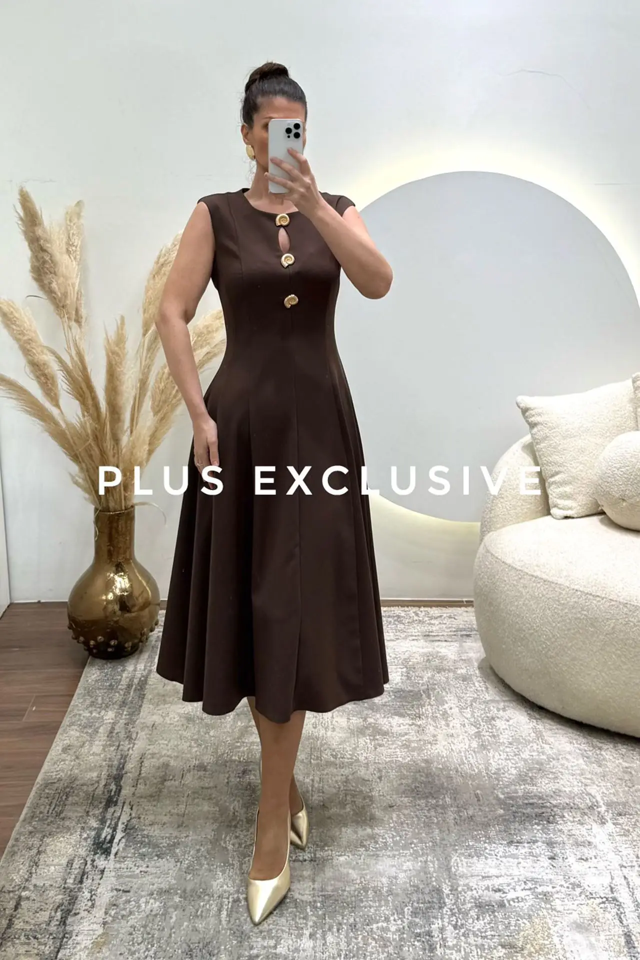 PočetnaProdavnicaNova elegantna kolekcijaDamska haljina A kroja – braon